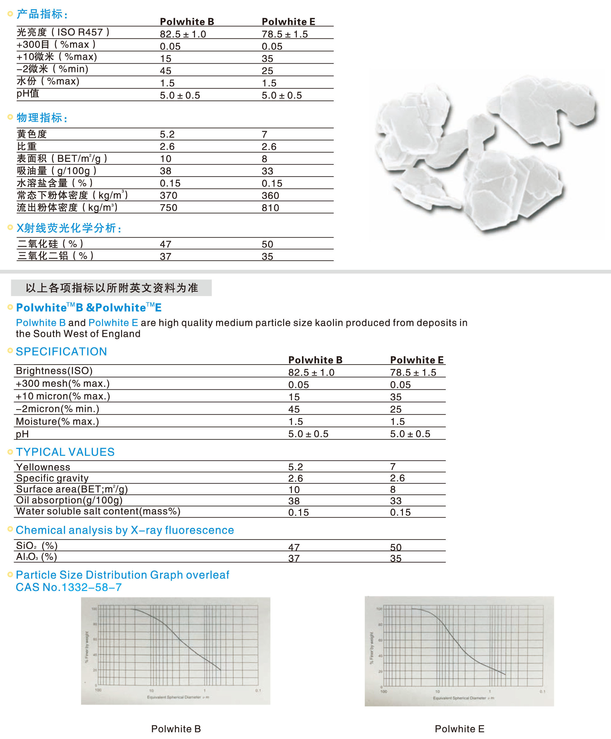 水洗高(gāo)嶺土 Polwhite B & Polwhite E